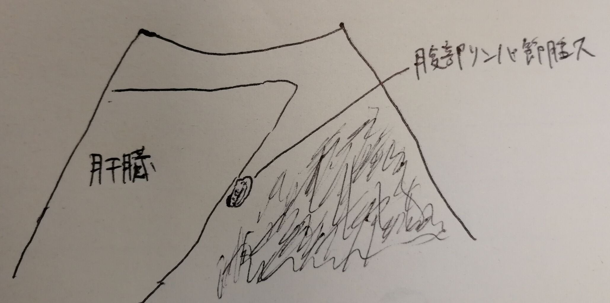 肝臓の炎症が起きると胆汁が生成されないので胆嚢内腔の虚脱や壁肥厚を認め、また腹部リンパ節の腫大などでもわかります。