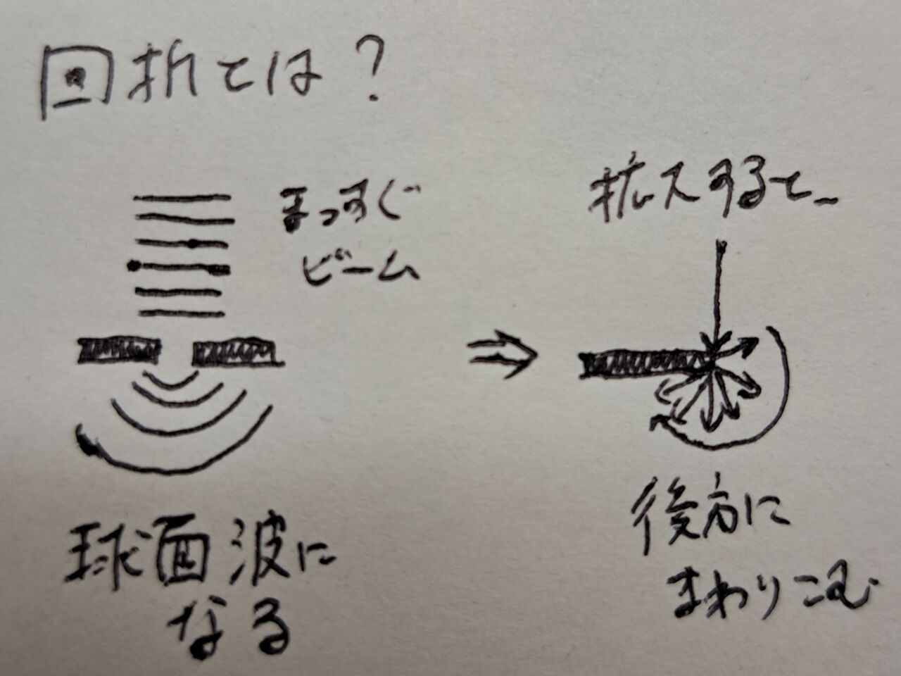 照射された超音波が物体の影になる部分に(回り込ん)で伝わる現象