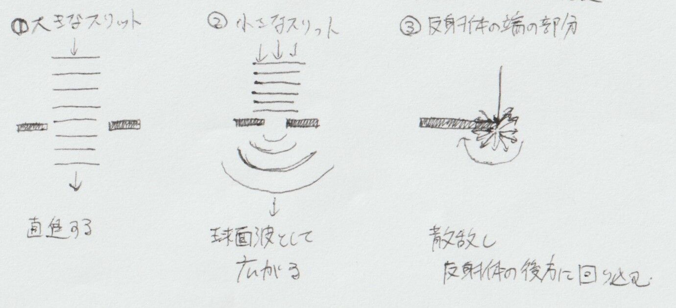 照射された超音波が物体の影になる部分に(⑤)で伝わる現象~散乱・回折の問題のノート~