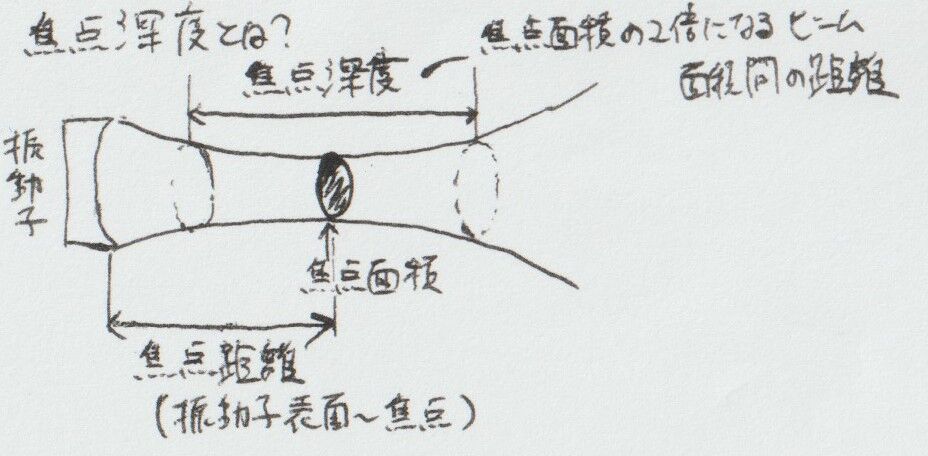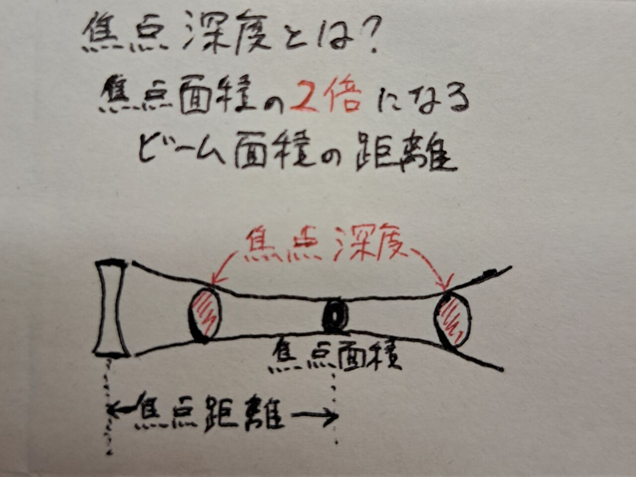 焦点深度→焦点面積の(2)倍になるビーム面積間の距離